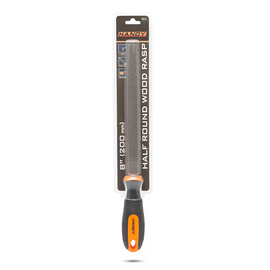 Minőségi, 200 mm hosszú, gumírozott nyelű ráspoly. Félkerek, edzett reszelőfelülettel, amely kiválóan használható faanyagokhoz. Az ergonómikus gumírozott nyél biztosítja a kényelmes fogást és a biztonságot a munkavégzés során. Tökéletes választás, ha éles sarkokat, vágáséleket kell reszelni.