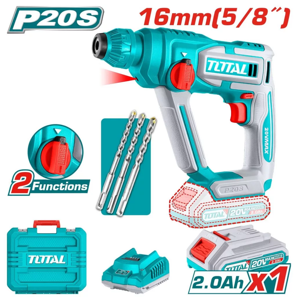TOTAL Fúró-vésőkalapács SDS Plus 16mm - 1x2Ah 5100prn/1,5J koffer+töltő