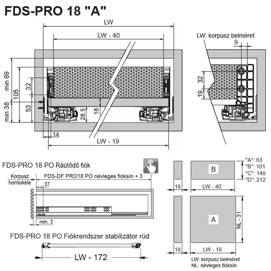 Fiókcsúszó FDS-PRO 18 HD A duplafalú fiókoldal 450mm Fehér 60kg Fém